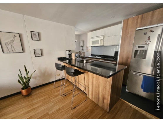 Apartamento Amoblado, Área de 79 m2 construidos y distribuidos, 3 habitaciones Habitación principal con vestier y baño cabinado, Sala - Comedor, Baño social, estudio, Cocina integral con Isla y maquina lavavajillas, parqueadero, Balcón.
